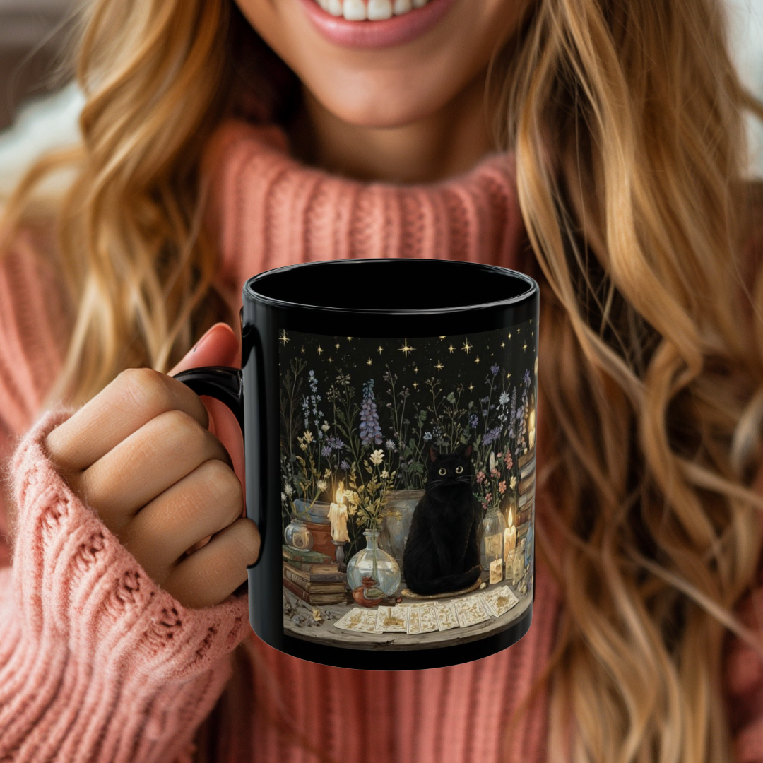 Magical Black Cat Mug, Mystical Coffee & Tea Mug, Halloween Gift for Cat Lovers, Perfect Gift for Cat Lovers, and Charm Seekers