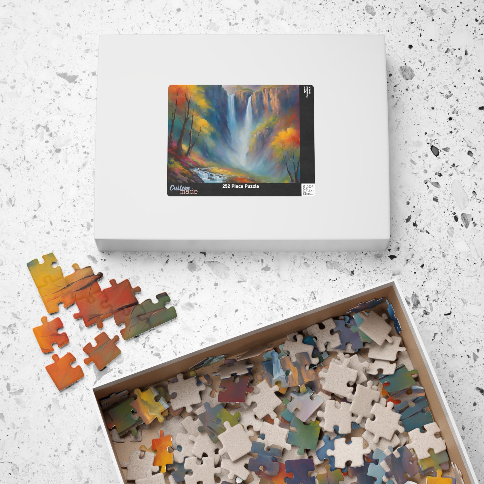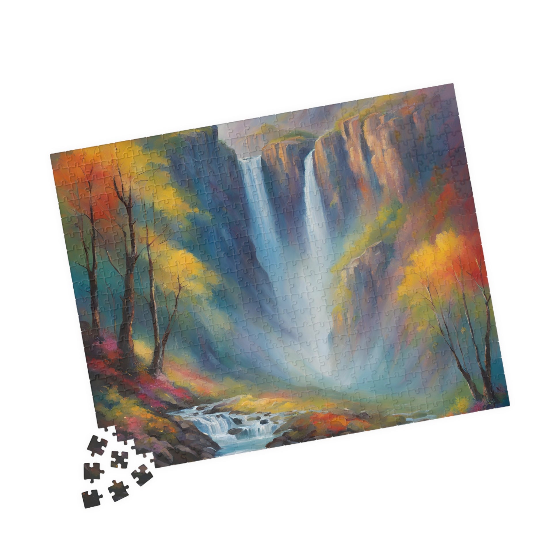 Autumn Falls: Waterfall in the Woods Puzzle | Serene Nature Jigsaw | Cozy Fall Activity Gift | Jazz Nβ Coffee Puzzles