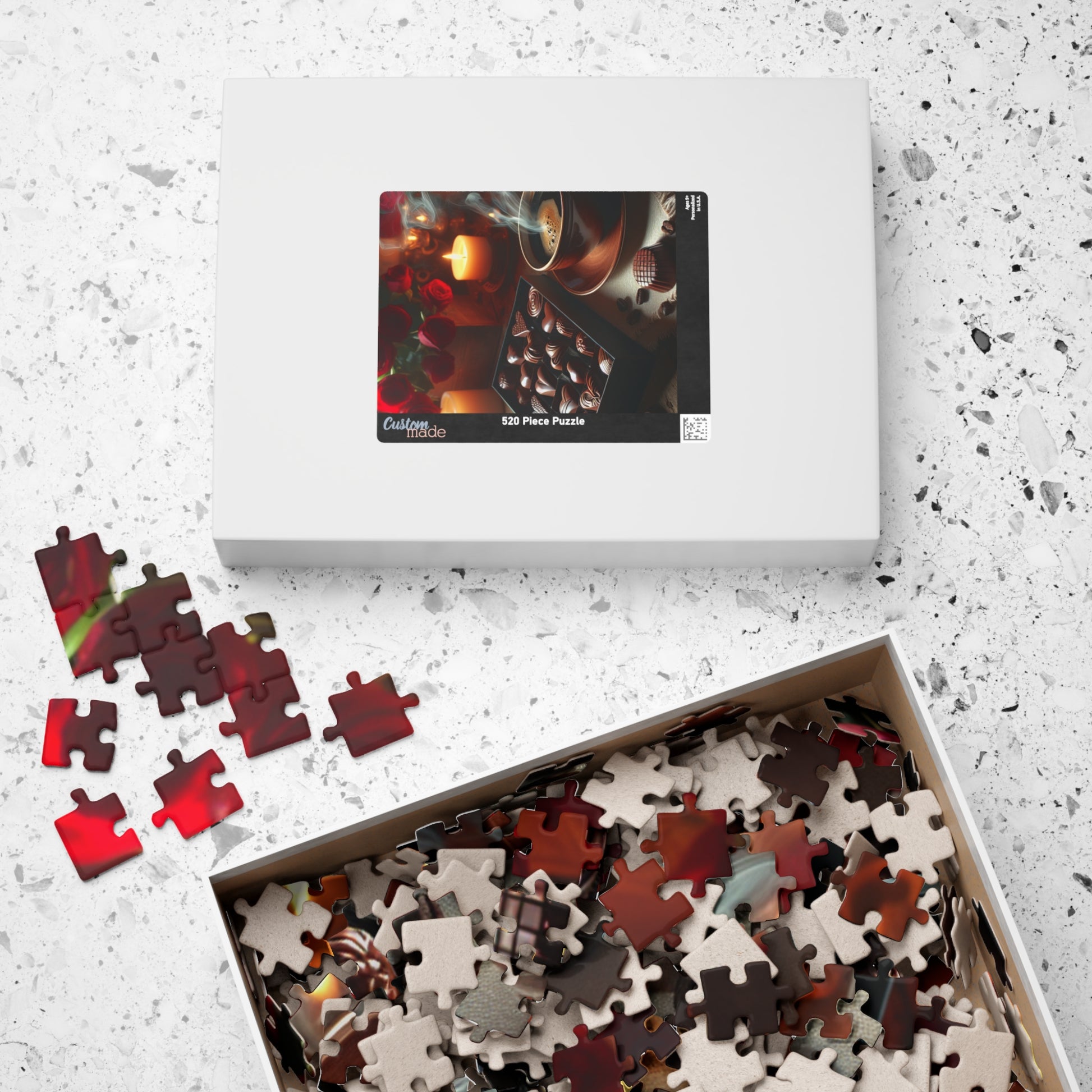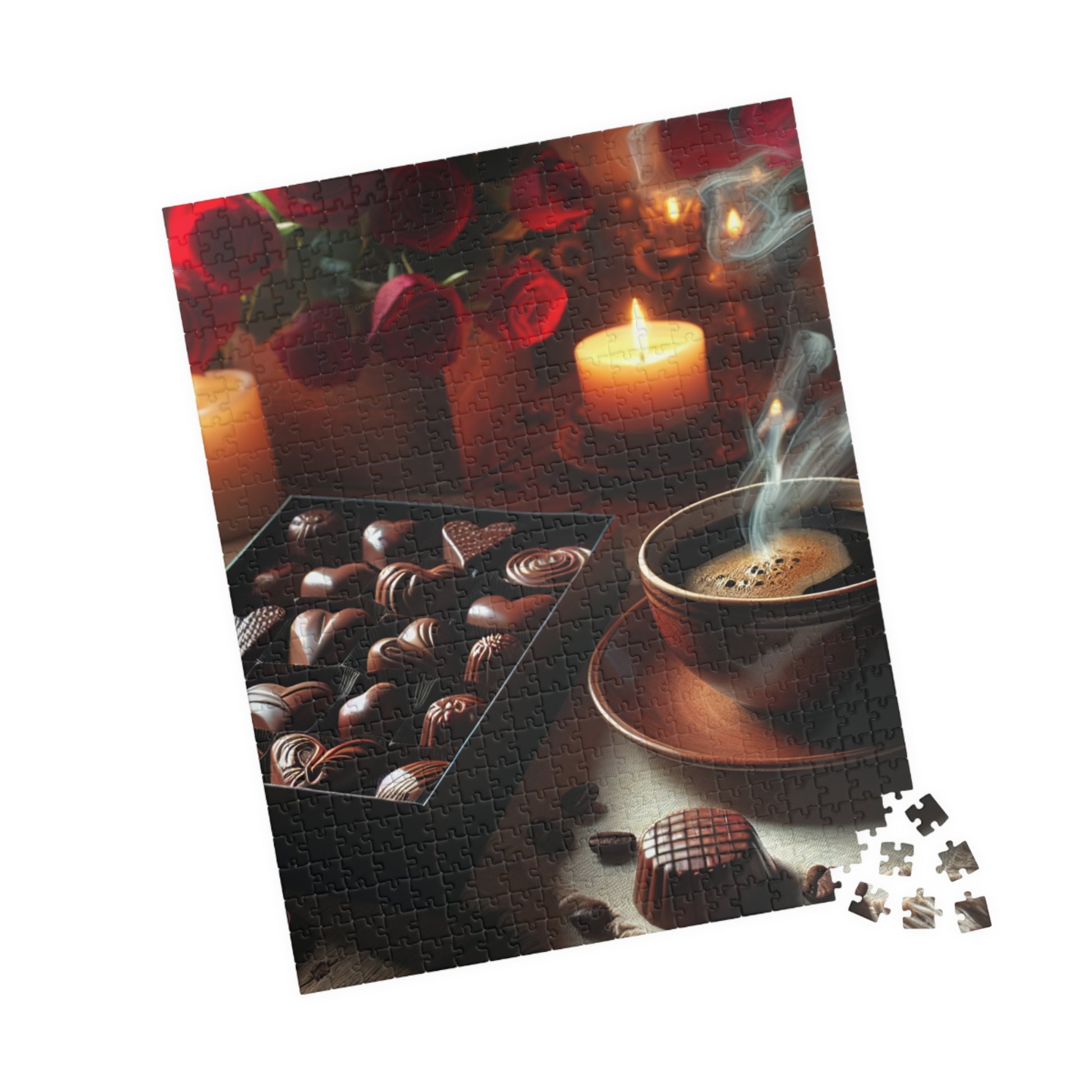 Valentine’s Indulgence Jigsaw Puzzle – Cozy Chocolate, Coffee & Candlelight Scene, Perfect Romantic Gift