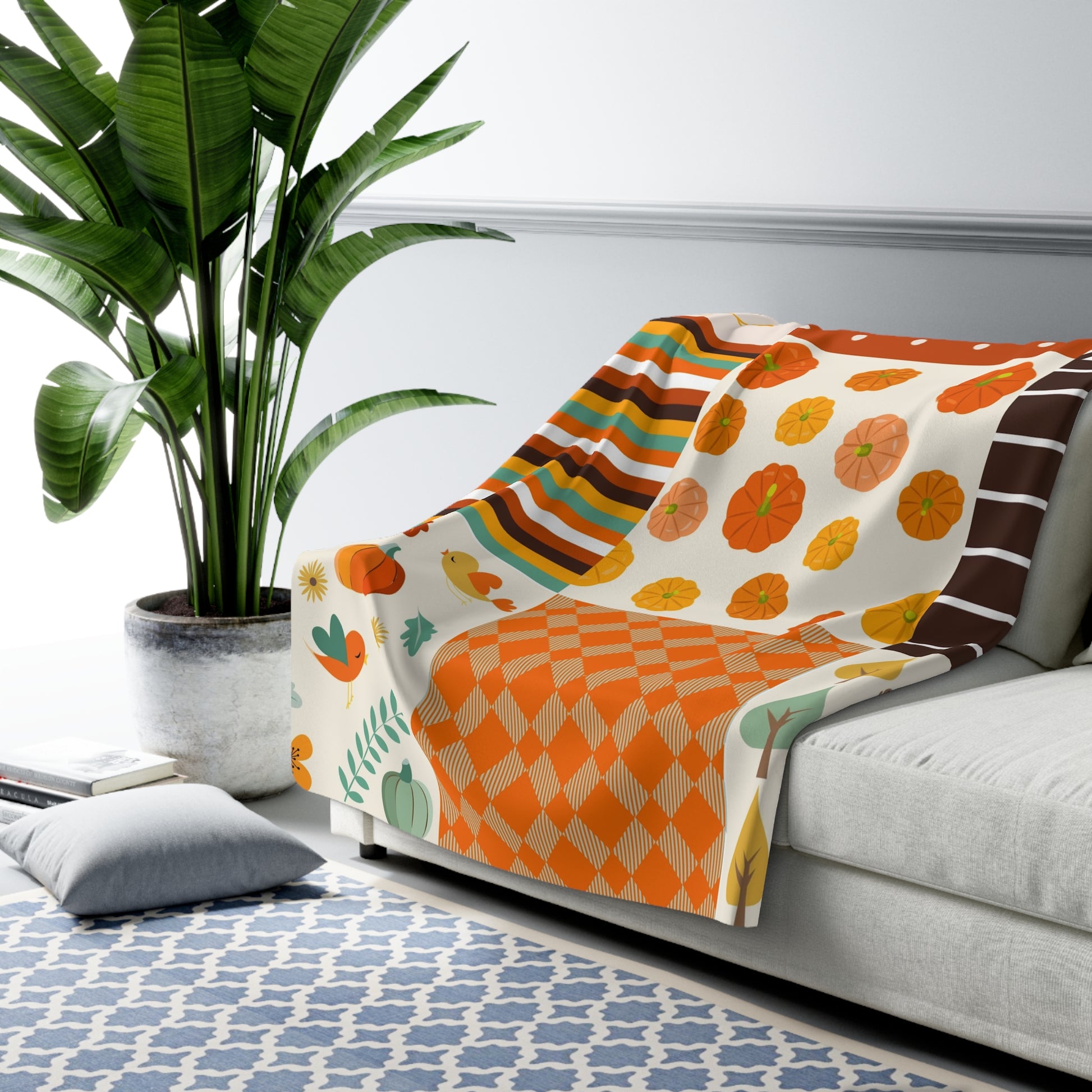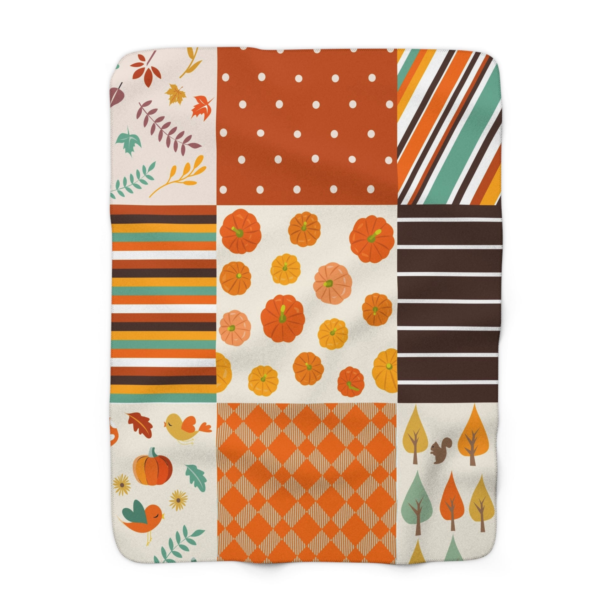 Cozy Autumn Sherpa Blanket | Pumpkin & Leaf Fleece Throw | Fall Decor Accent | Soft Plush Warm Blanket Gift | Jazz Nβ Coffee Puzzles