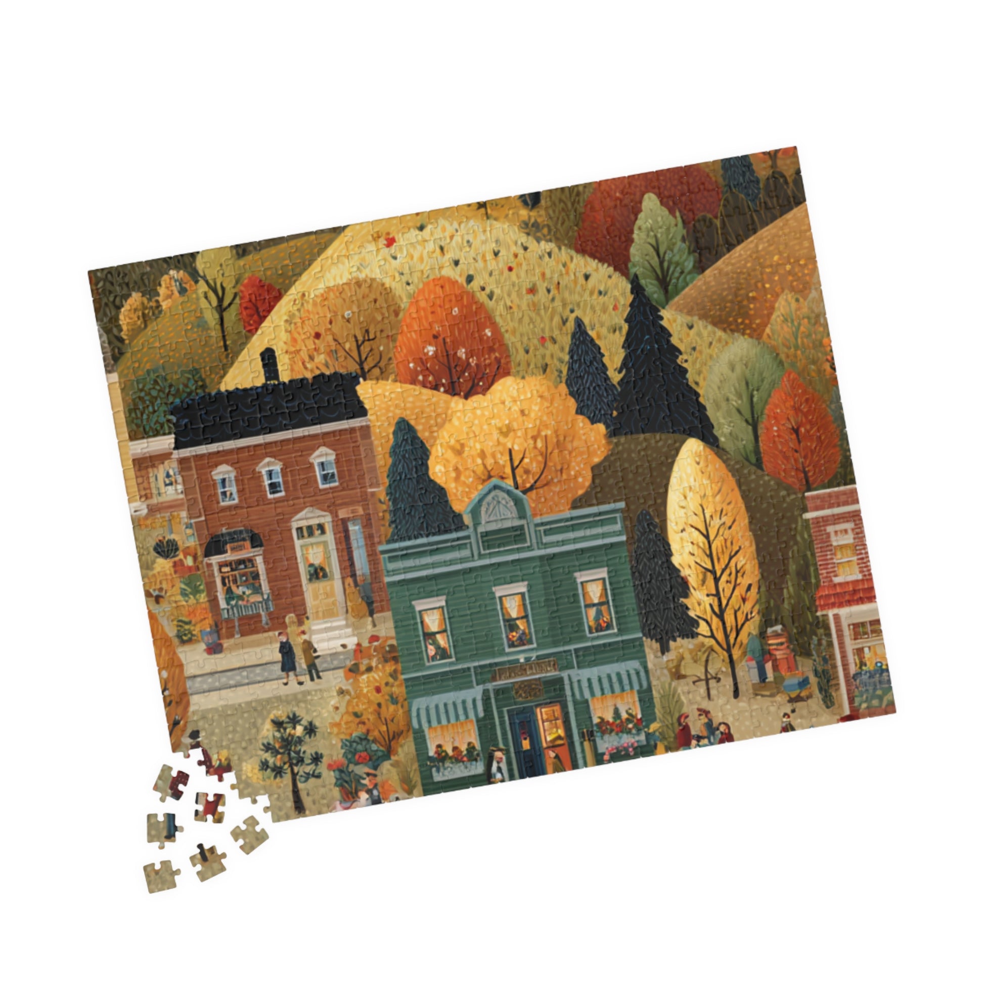 Whispering Pines Village Puzzle | Autumn Mountain Countryside Scene | Cozy Fall Jigsaw Gift | Jazz Nβ Coffee Puzzles