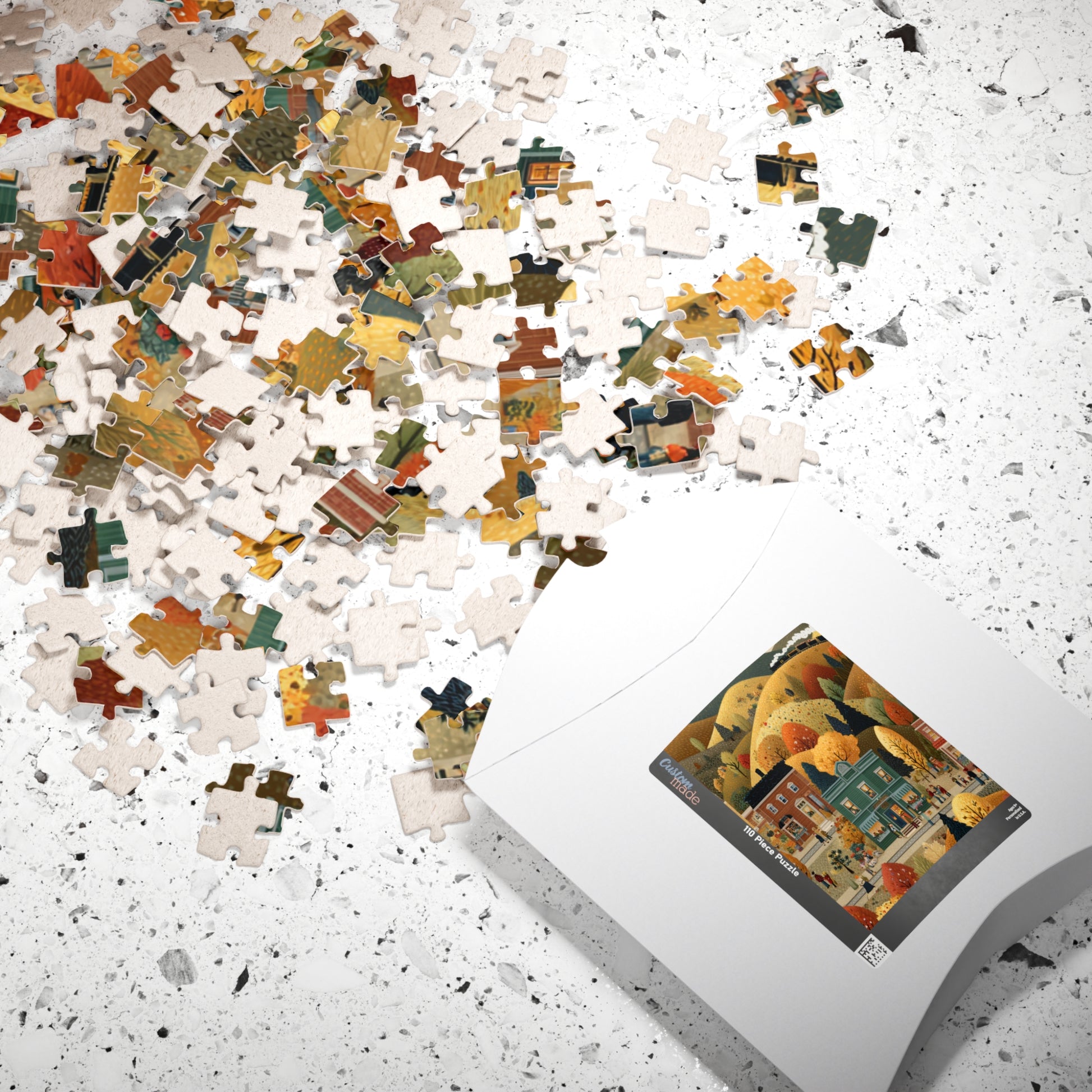 A wonderful gift for autumn enthusiasts, puzzle collectors, or anyone who loves cozy mountain scenery, this design makes a timeless addition to your seasonal collection.