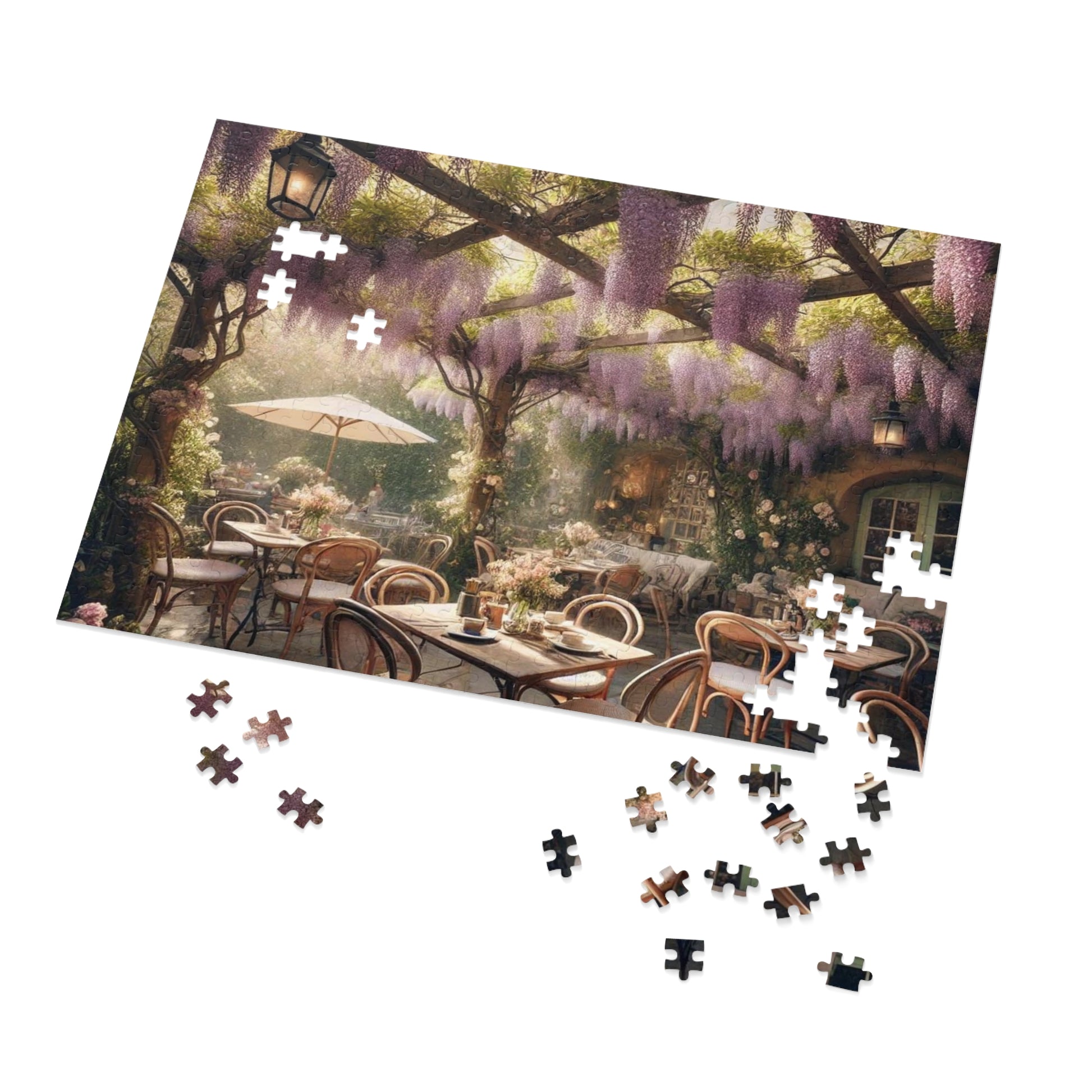 Wisteria Whispers Jigsaw Puzzle – Enchanted Café Scene, Cozy Indoor Activity, Gift for Puzzle Lovers, Relaxing Art Puzzle